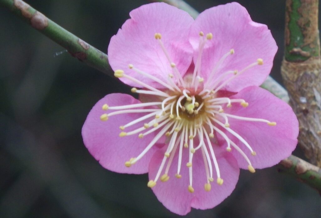 検索 大湊・おおみなと ウメの品種一覧 2026.01.222026.02.11 大湊・おおみなと 花色:紅色一重の大輪咲き始めの時期:1月中旬~端正な花で『道知辺』によく似た花である。豊後性に分類しているが、野梅系に近い花である。若枝や葉柄などで道知辺と区別できる。また、蕾が『紅筆』のように尖ることもある。
