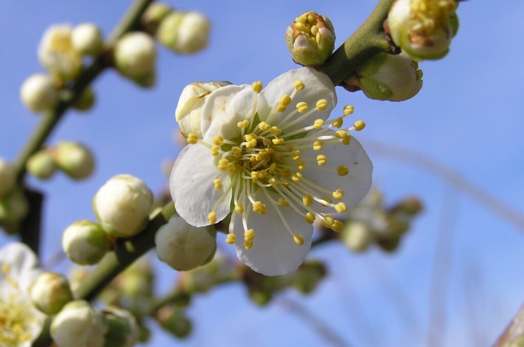 検索 月影・つきかげ ウメの品種一覧 2026.01.222026.02.11 月影・つきかげ OLYMPUS DIGITAL CAMERA 花色:青白色一重の中輪咲き始めの時期:2月上旬~萼の黄緑色、花の青白色は清楚な感じで、多くの人に好まれている。名前が良いためか、多くの場所で植えられているが、いろんなタイプがあり、どれが本物か不明。 植える場合には、月をイメージするような花弁が丸くて重なり、花も大振りのものを選びたい。