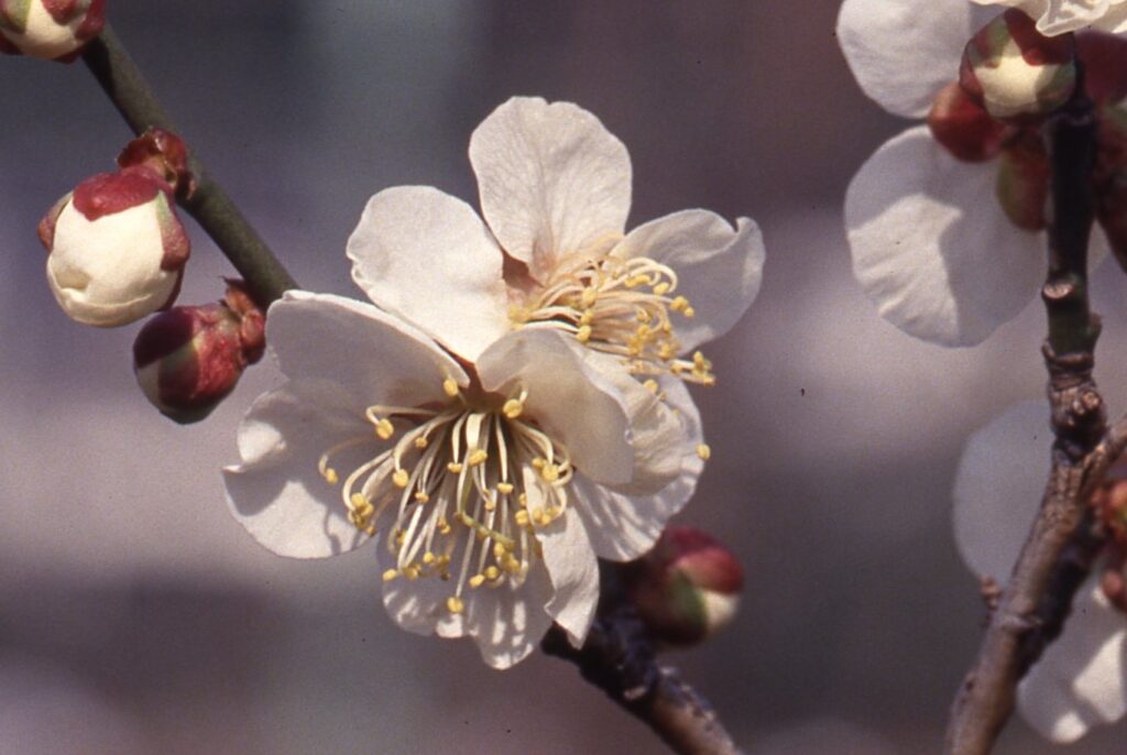 検索 浜千鳥・はまちどり ウメの品種一覧 2026.01.222026.02.11 浜千鳥・はまちどり 花色:白色一重の中輪咲き始めの時期:2月上旬~蕾の時は先が尖っており、開花後も花弁の先が尖り、波を打つ。雄しべは整開し、花弁とほぼ同じ長さである。樹勢、花つき共に良い品種である。