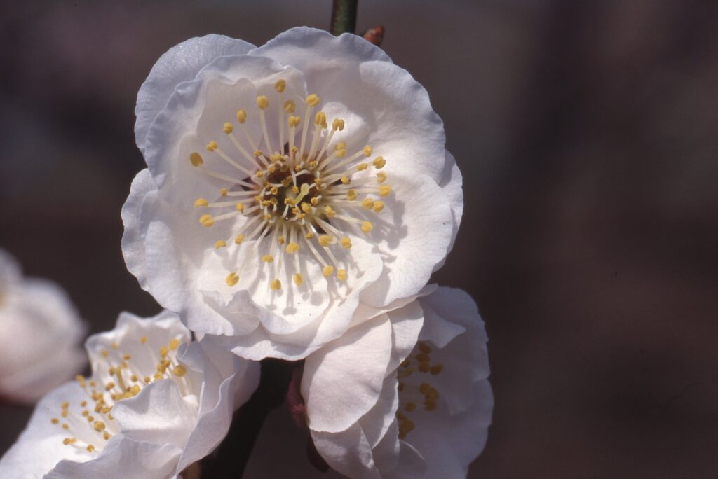 検索 白牡丹・はくぼたん ウメの品種一覧 2026.01.222026.02.11 白牡丹・はくぼたん 花色:移り白色八重の大輪咲き始めの時期:3月中旬~花柄は短く、雄しべも短く整開、花形の良い品種である。大輪で牡丹のように見えることから、この名前がある。明治時代のウメ『銘花三牡丹(玉牡丹・紅牡丹)』の一つである。