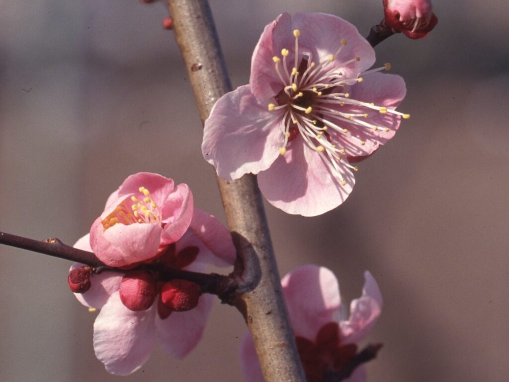 台閣朱砂・たいかくしゅさ(緋梅性)花色:薄紅色八重の大輪開花時期:2月下旬~二段咲きになる品種で、花の中にもう一つ花が咲く。花色は裏紅で、蕾の色も含め濃く見える。二段咲きになることを「台閣」と呼んでいるが、樹の状態などですべての花に出るわけ...
