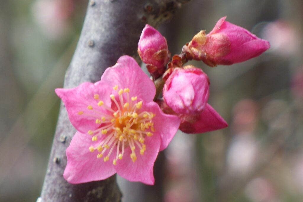 検索 紅雀・べにすずめ ウメの品種一覧 2026.01.222026.02.11 紅雀・べにすずめ 花色:紅色一重の小輪咲き始めの時期:2月上旬~蕾の内は『紅筆』と区別がつかないが、開花すると桔梗咲きになる点で区別ができる。小輪だが花つきが良く、賑やかな品種である。