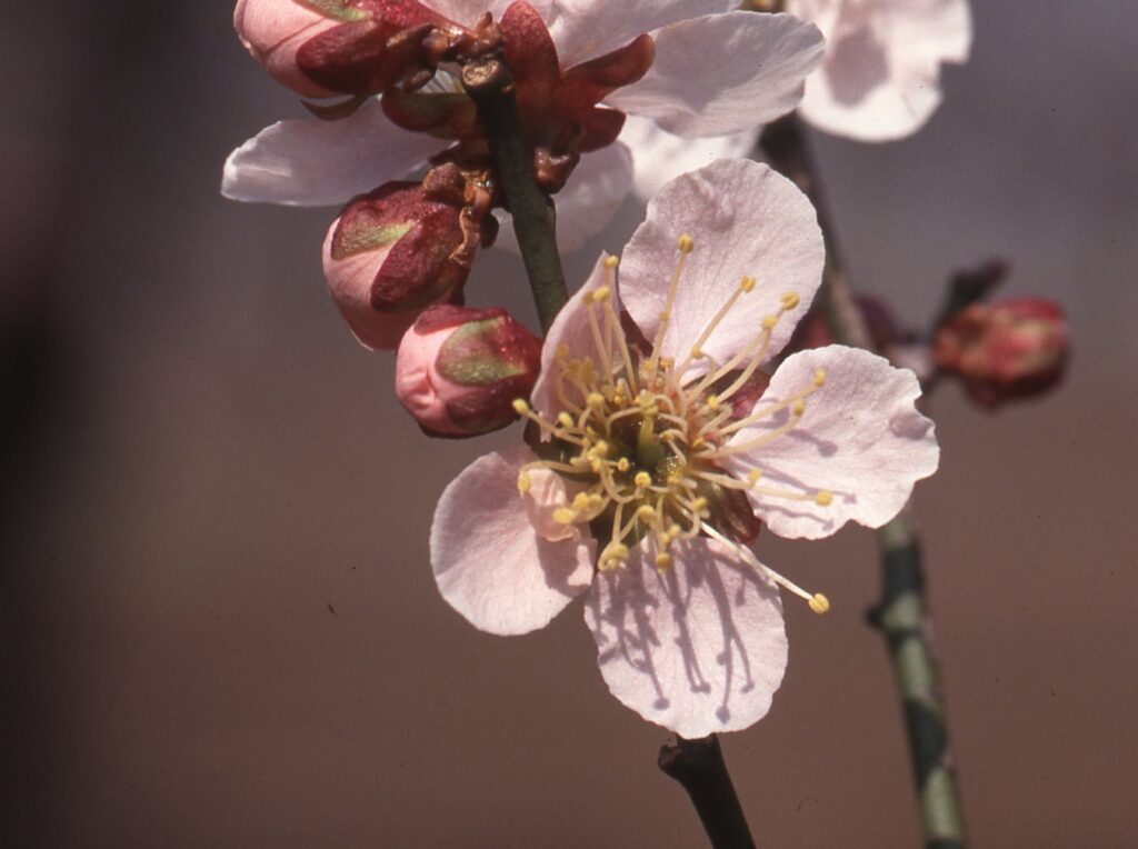 蕾の内は紅色が濃く、開花すると薄くなる。