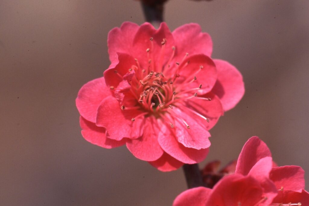 検索 黒雲・くろくも ウメの品種一覧 2026.01.222026.02.11 黒雲・くろくも 花色:黒紅色八重の中輪咲き始めの時期:2月上旬~花弁は25枚くらいで、波を打って重なる抱え咲きである。花柄は長く、花は下向きに咲く。雄しべは多いが長短不揃いで、花の品格は落ちる。